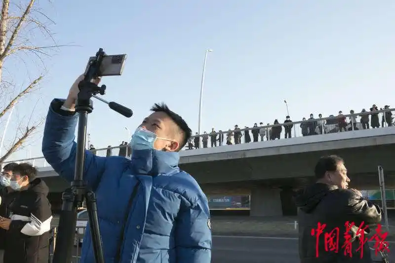 在首钢园周边居处的钟先生,手持手机三脚架,于人群当中是异常醒目。他在早上八点便出去寻觅拍摄点,挑选了一处看到火炬手交接的地方架设好装置。冬奥会在家门口举办,这般契机极为难得,我定要录制留存给晚辈孙女观瞧。