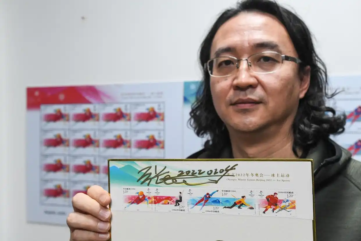 连同冰墩墩几乎是同一时间诞生的,是广州设计师张强团队所设计的冬奥会冰上运动纪念邮票,2022年2月8日,张强给新华社记者展示了他满满都是的设计手稿,这套邮票总共五枚,分别呈现的是速度滑冰、短道速滑、花样滑冰、冰壶以及冰球五个冰上项目,张强于设计进程里,深入钻研每个项目的运动特性,尽力在方寸之地完美展现运动员矫健的身姿。